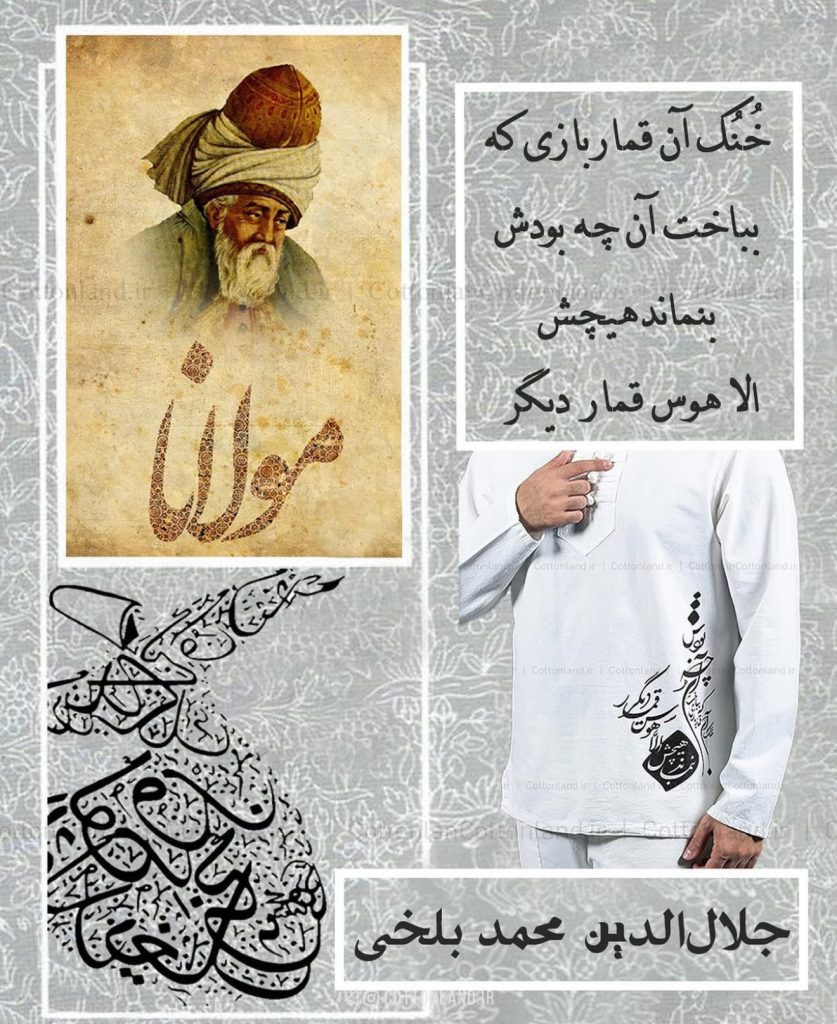 پوشاک الیاف طبیعی سرزمین پنبه به منظور گسترش فرهنگ ایرانی و استفاده از لباس هایی با جنس الیاف طبیعی اقدام به تولید پیراهن چاپی با اشعار...